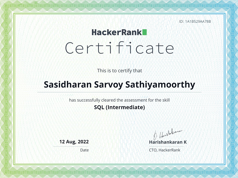 SQL (Intermediate Level) Certification - HackerRank